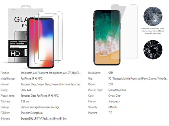 3d Glass For Iphone 6 7 X xr xs 0.33mm For samsung Mobile Tempered Glass Screen Protector.